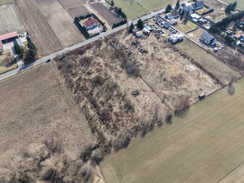 11 wydzielonych, sąsiadujących ze sobą działek, tworzących prostokąt, aktualnie brak planów, według studium zagospodarowania miały funkcje gospodarczo-produkcyjno-rzemieślniczą, przy działkach woda oraz energia, gaz w odległości kilkudziesięciu metrów.