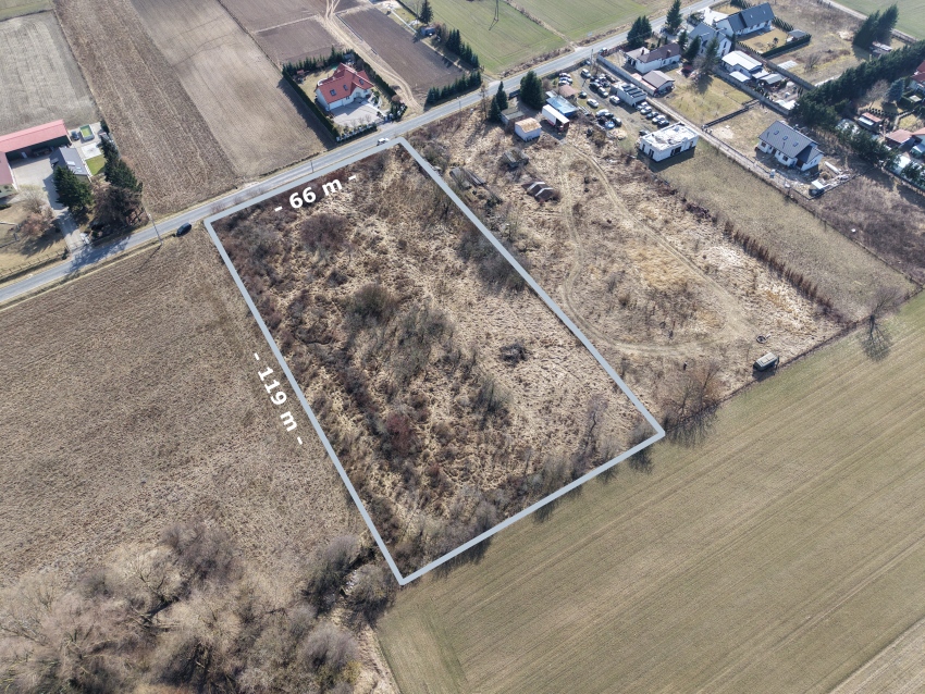 Działka o powierzchni 1333 mkw , kształtem zbliżona do prostokąta o wymiarach około 53 m szerokości x 26 m głębokości, położona w miejscowości Kruszynek, gmina Włocławek, na terenie dla którego przed podziałem wydano warunki zabudowy dla domu jednorodzinnego z budynkami gospodarczymi i garażowymi, z dwóch stron ogrodzona siatką, w sąsiedztwie nowe domy, dalej zabudowa zagrodowa, blisko szkoła, przedszkole, przychodnia lekarska, kościół, sklepy, przystanki autobusowe. W ewidencji gruntów klaso użytek RIIIa. W odległości około 60 metrów energia elektryczna, wodociąg gminny i światłowód. Dojazd drogą asfaltową + około 50 metrów drogą gruntową.