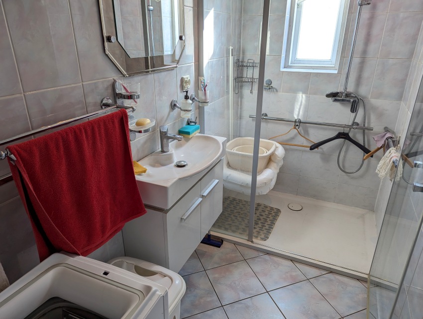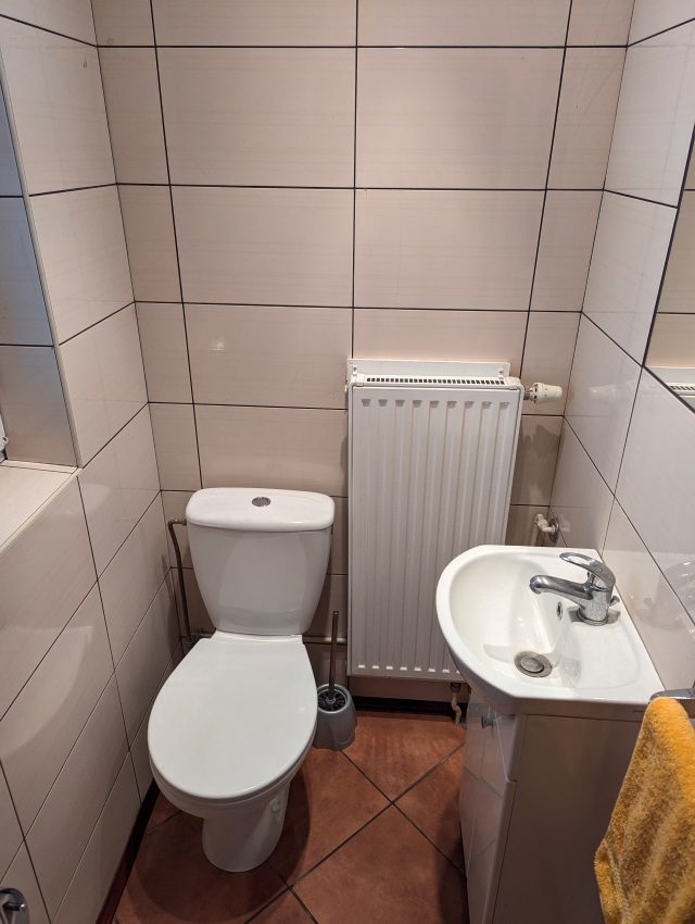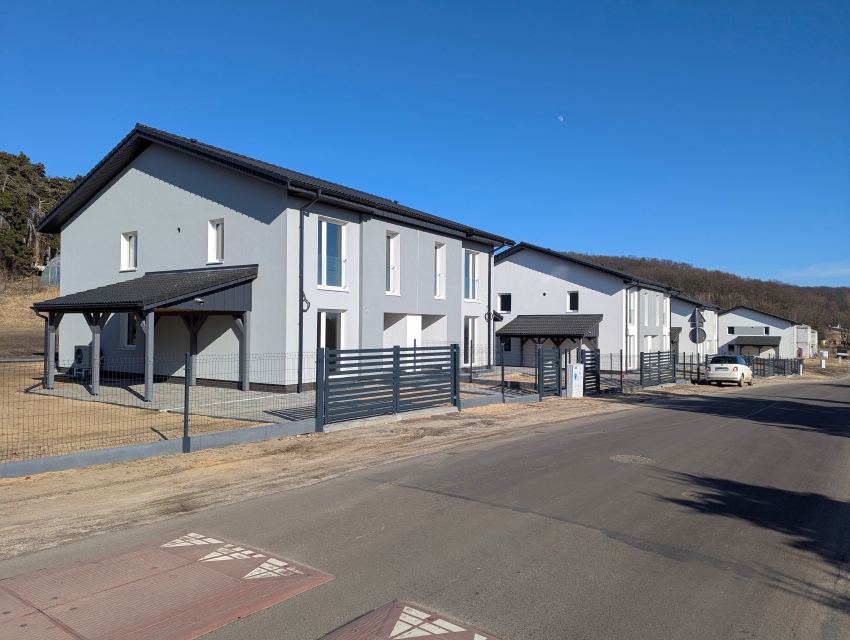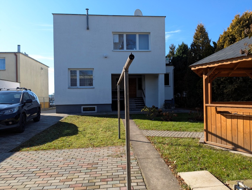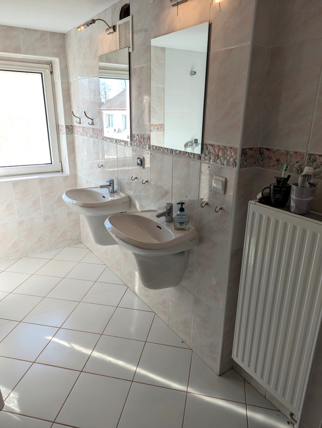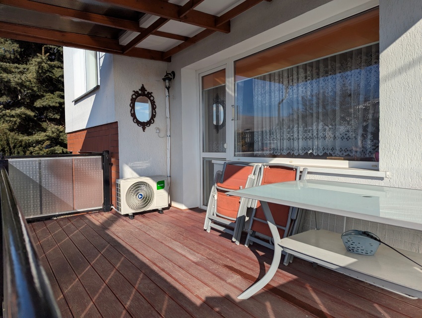 CO gazowe z piecem dwufunkcyjnym kondensacyjnym Brotje, w kuchni, w łazience na piętrze i w garderobie ogrzewanie podłogowe, dodatkowo, na dachu, zainstalowano solary słoneczne do podgrzewania ciepłej wody, które znacznie obniżają koszty użytkowania domu. Dorowadzony gaz przewodowy, woda z sieci miejskiej, odpływ do własnej, ekologicznej oczyszczalni ścieków, kanalizacja miejska w ulicy, dodatkowo własne ujęcie wody do podlewania działki. Z zewnątrz ściany domu pokryte malowanym tynkiem mineralnym, fundamenty, taras i wejścia starannie wykończone klinkierem.