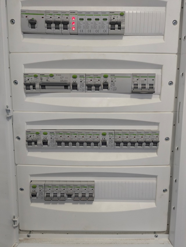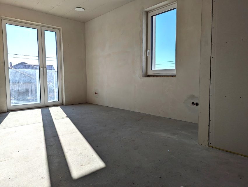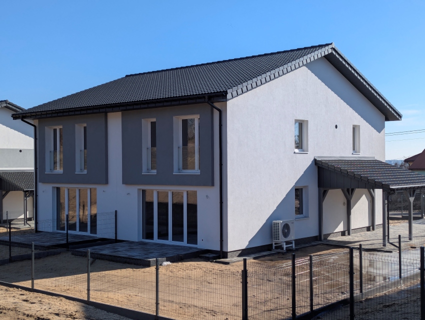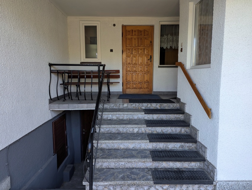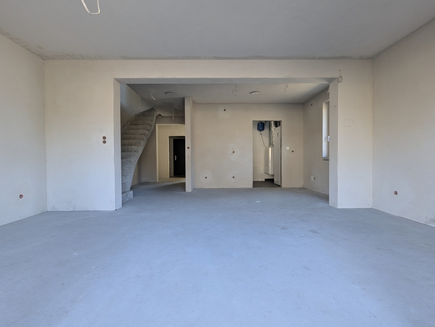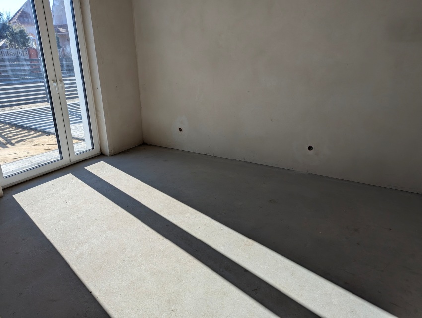 Cały dom starannie i nowocześnie wykończony: na ścianach i sufitach gładź, okna aluminiowe o podwyższonej izolacji termicznej Aluprof, z granitowymi parapetami, w salonie, w pokojach i przedpokoju na piętrze, na podłodze drewno egzotyczne jatoba, wrota do garażu Hormanna, otwierane pilotem, w kuchni, przedpokojach i łazienkach - gresy szkliwione, glazura, terakota, grzejniki Purmo, termostaty Danfoss.