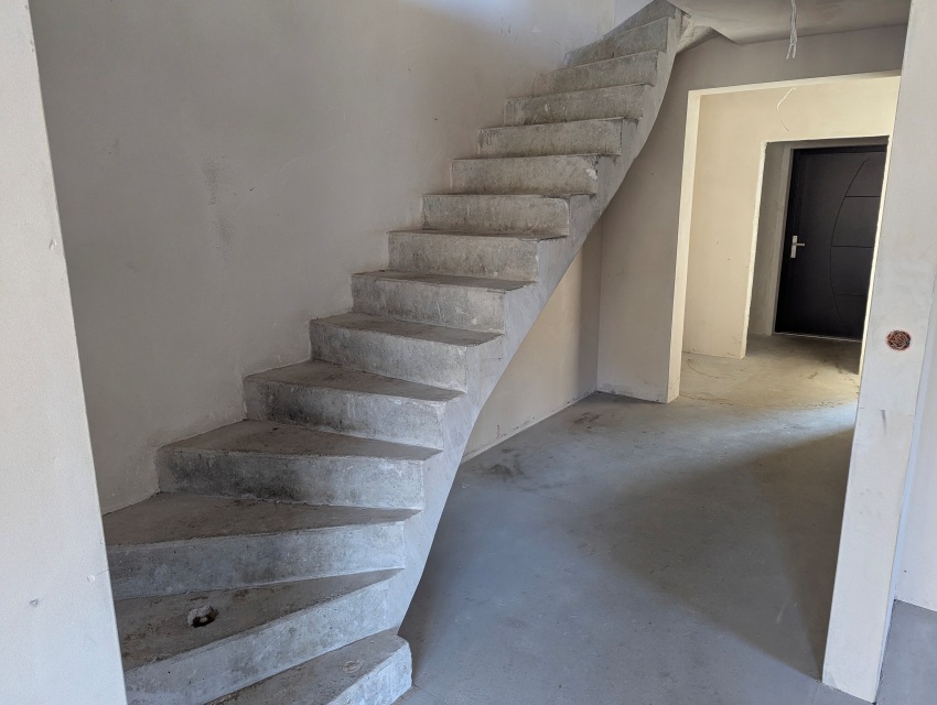 Na piętrze, o wysokości 2,56 m, na które prowadzą łagodne schody granitowe z balustradami ze stali nierdzewnej, mieści się jasny przedpokój z dużym świetlikiem w dachu, pokój 18,04 mkw, pokój 25,15 mkw, z wyjściem na duży balkon, z garderobą obok 14,03 mkw, pokój 21,71 mkw oraz bogato wykończona i wyposażona łazienka z wanną, kabiną prysznicową, umywalkami schowanymi w ponad 5 metrowy granitowy blat, muszlą, bidetem.